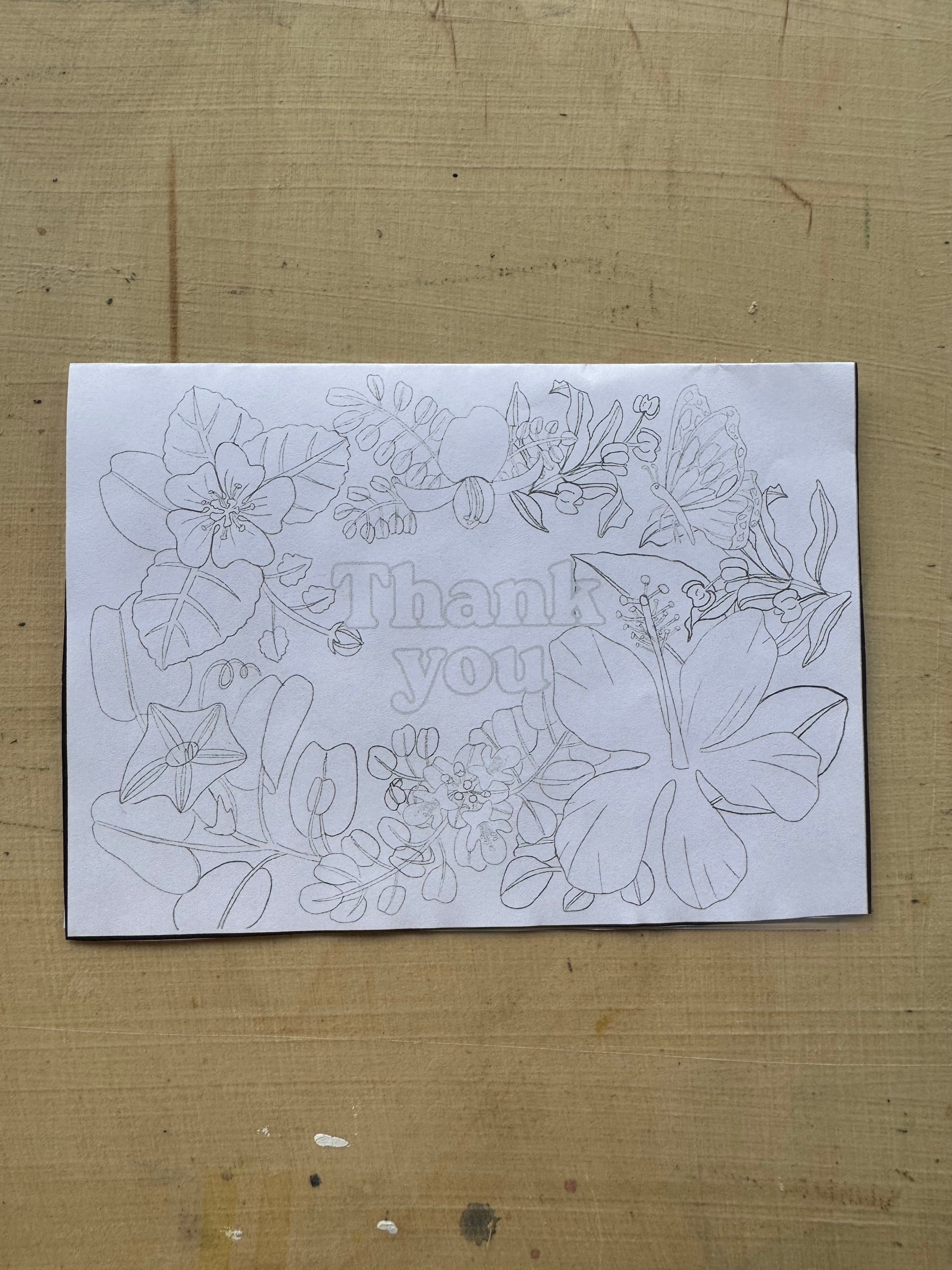 Cut around the black lines and fold along the gray. Color or paint (I do not recommend watercolor even if you use watercolor paper because most inks are water soluble).